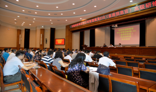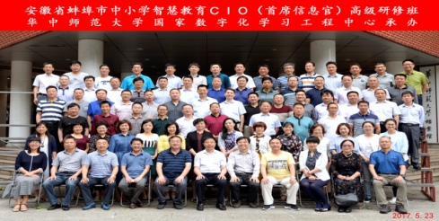 2017年5月22日至27日,蚌埠市中小学智慧教育CIO(首席信息官)高级研修班在华中师范大学成功举办。5月23日上午,本次研修班开班仪式在华中师范大学科学会堂一楼报告厅举行,安徽省蚌埠市教育局总督学王光辉、安徽省蚌埠市教师进修学校校长王庆军、国家数字化学习工程技术研究中心副主任吴绍靖出席了开班仪式。