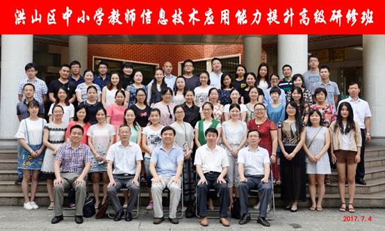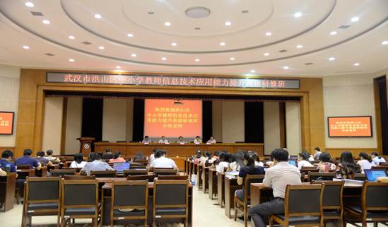 2017年7月3日至6日,洪山区中小学教师信息技术应用能力提升高级研修班在华中师范大学成功举办。7月3日上午,本次研修班开班仪式在华中师范大学科学会堂一楼报告厅举行,武汉市洪山区教科院院长江思容、武汉市洪山区教育信息技术中心主任王尤雄、武汉市洪山区教科院书记李丹、武汉市洪山区教育信息技术中心副主任张辅纯、国家数字化学习工程技术研究中心副主任吴绍靖出席了开班仪式。