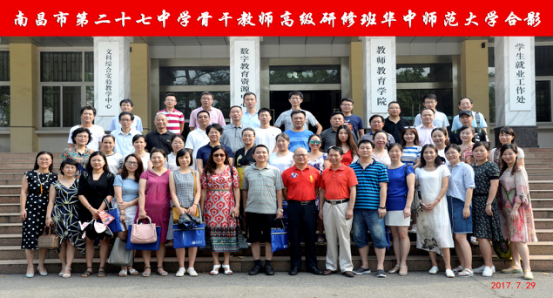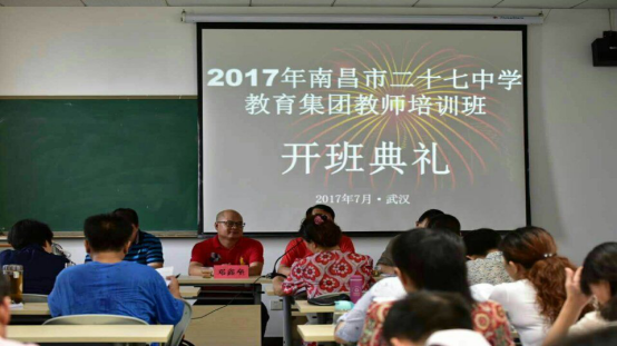2017年7月29日至31日,江西省南昌市第二十七中学骨干教师高级研修班在华中师范大学成功举办。7月29日上午,本次研修班开班仪式在华中师范大学教师教育学院A511教室举行,江西省南昌市第二十九中副书记蒋永龙、南昌市第二十四中副校长祝福祖、江西省南昌市第二十七中教务处主任邓鑫垒、华中师范大学职业与继续教育学院副院长汪昌海出席了开班仪式。