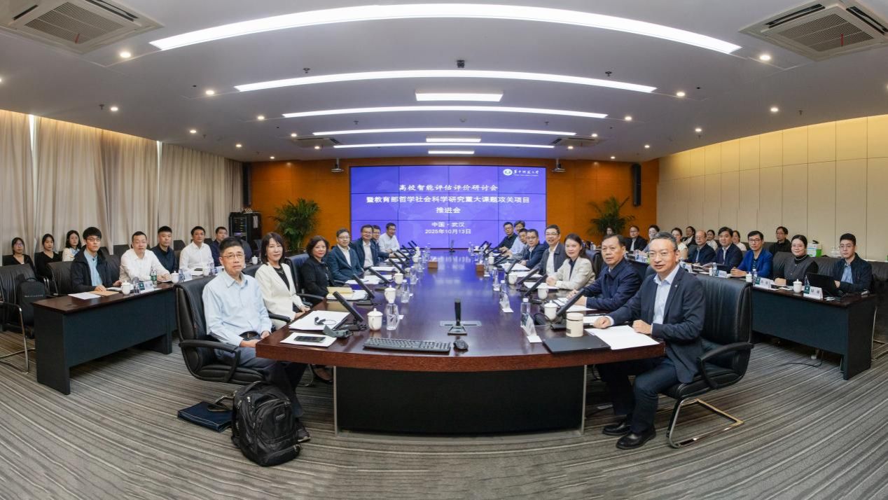 2025年10月13日,高校智能评估评价研讨会暨教育部哲学社会科学研究重大课题攻关项目推进会在学校南湖综合楼1182会议室召开。教育部教育督导局局长范唯、副局长马杰、教育部学位与研究生教育发展中心副主任任增林,专家组成员中国工程院院士丁烈云、武汉大学校长张平文院士、复旦大学原副校长徐雷、西安交大中国西部高等教育评估中心主任陆根书,湖北省教育信息化发展中心主任尹云波,我校校长彭双阶、副校长刘三女牙以及学校有关职能部门负责人参加活动。...