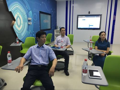 赵校长首先在“展示与体验中心”认真了解和亲身体验了实验室一系列自主研发的教育信息化产品之后在会议室召开座谈会并听取了汇报。会上刘主任围绕中心“定位与使命”、“本体工作”及“支撑学校发展”等方面取得的成果做了详细的工作报告。同时国家工程实验室发展中面临的困难和挑战作了深入分析,提出了几点建议与希望。