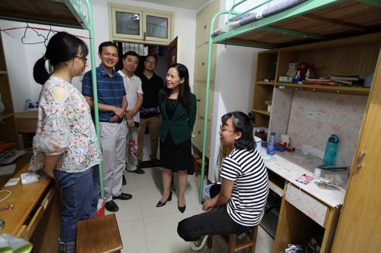 8月31日下午,党委书记罗丽华、副书记黄涛、副主任吴绍靖、副主任汪兵等一行人先后来到东区4栋、东区3栋看望本科新生,并与新生及家长亲切交流,询问新生何时到校,来自哪里,吃住是否习惯等等,向新生及家长介绍了工程中心和工程实验室的发展情况,对新生们录取如此有前景的专业表示祝贺。
