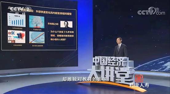 11月30日晚22时,国家数字化学习工程技术研究中心主任、教育大数据应用技术国家工程实验室主任杨宗凯教授受邀走进CCTV2央视财经频道《中国经济大讲堂》,以“信息技术如何‘翻转’课堂”为题,为观众深度解读如何利用信息技术,促进教育融合创新发展。