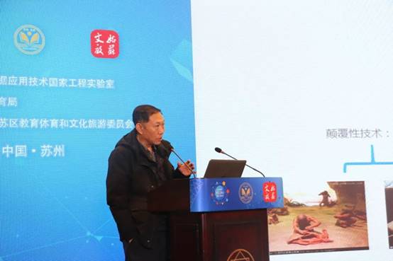 教育部智慧教育示范区建设专家组组长、教育大数据应用技术国家工程实验室主任杨宗凯教授作研讨会主旨发言。他表示,在信息时代,苏州主动作为、创新教育,紧跟时代步伐、先行先试,这是本次研讨会放到苏州的一大原因。他认为,教育信息化要“以人为本”,促进人的发展,着力培养“6C”人才;要“以合为贵”,通过合作、整合,协同创新。他希望,苏州创建“智慧教育示范区”的过程中,在转变教育教学理念、创新教育体制机制与治理能力、提升教师和教育管理者信息素养和能力、推进UGBS模式下的深度协同等方面,形成“苏州经验”,示范全省、领跑全国。会上,他还介绍了上海闵行、湖北武汉等在创建智慧教育示范区方面的有益探索。
