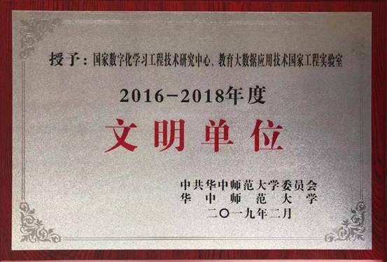 会上,校长、党委副书记郝芳华宣读《关于表彰2016-2018年度校内“文明单位”的决定》,国家数字化学习工程技术研究中心、教育大数据应用技术国家工程实验室获评2016-2018年度校内“文明单位”,校领导为获奖单位代表颁发奖牌。