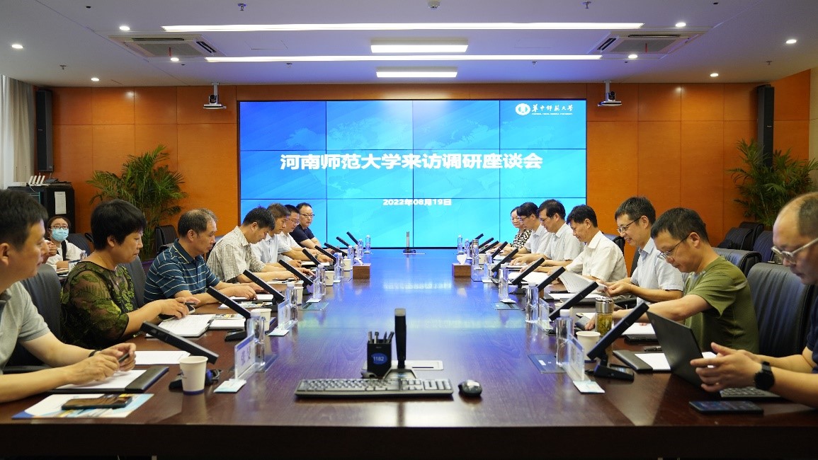 8月19日,河南师范大学党委书记、校长王宗敏一行访问国家工程研究中心。华中师范大学党委书记赵凌云、国家工程研究中心主任杨宗凯、华中师范大学党委副书记陈迪明等参加来访调研座谈会。会议由陈迪明副书记主持。
