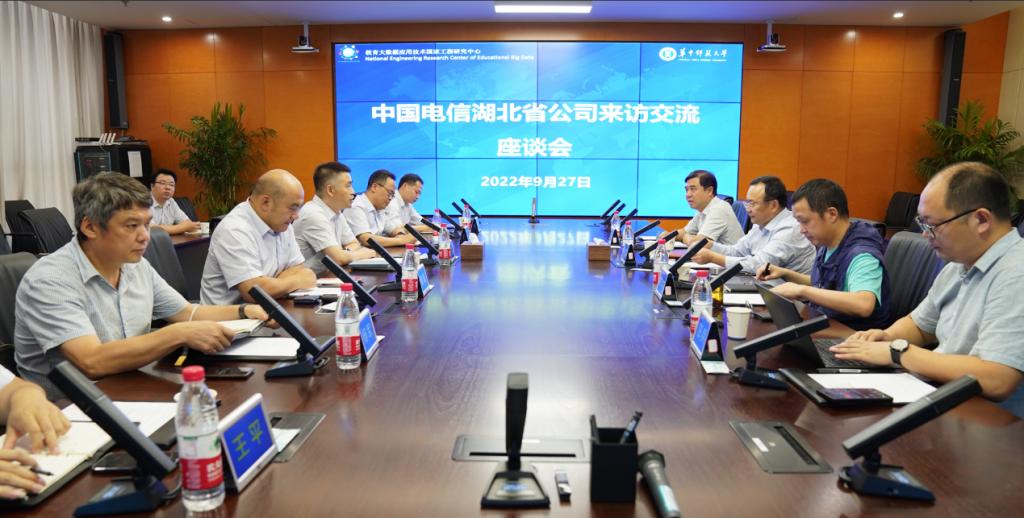 2022年9月27日,中国电信天翼云湖北分公司副总经理史军一行访问国家工程中心。华中师范大学副校长夏立新、人工智能教育学部副部长兼大数据应用技术国家工程研究中心常务副主任刘三女牙、人工智能教育学部副部长吴绍靖等参加来访调研座谈会。会议由夏立新主持。