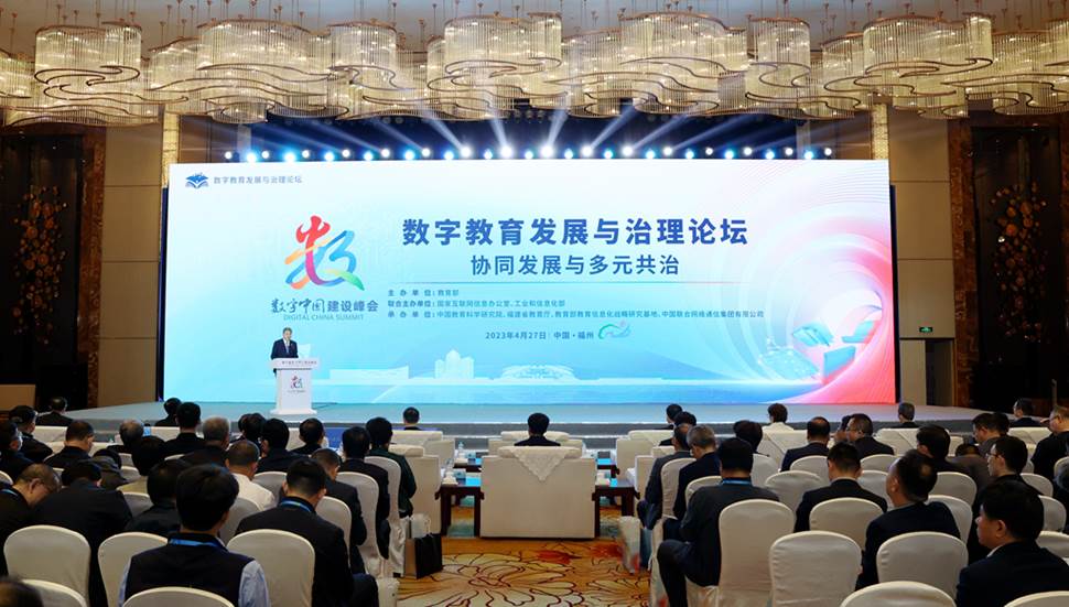 4月27日下午,“数字教育发展与治理论坛”首次亮相第六届数字中国建设峰会。本届论坛以“数字教育:协同发展与多元共治”为主题,由教育部主办、国家互联网信息办公室、工业和信息化部联合主办,中国教育科学研究院、福建省教育厅、教育部教育信息化战略研究基地、中国联合网络通信集团有限公司共同承办。教育部副部长吴岩,中央网信办、国家网信办总工程师孙蔚敏,福建省人民政府副省长常斌,中国联通董事长刘烈宏出席论坛并致辞。