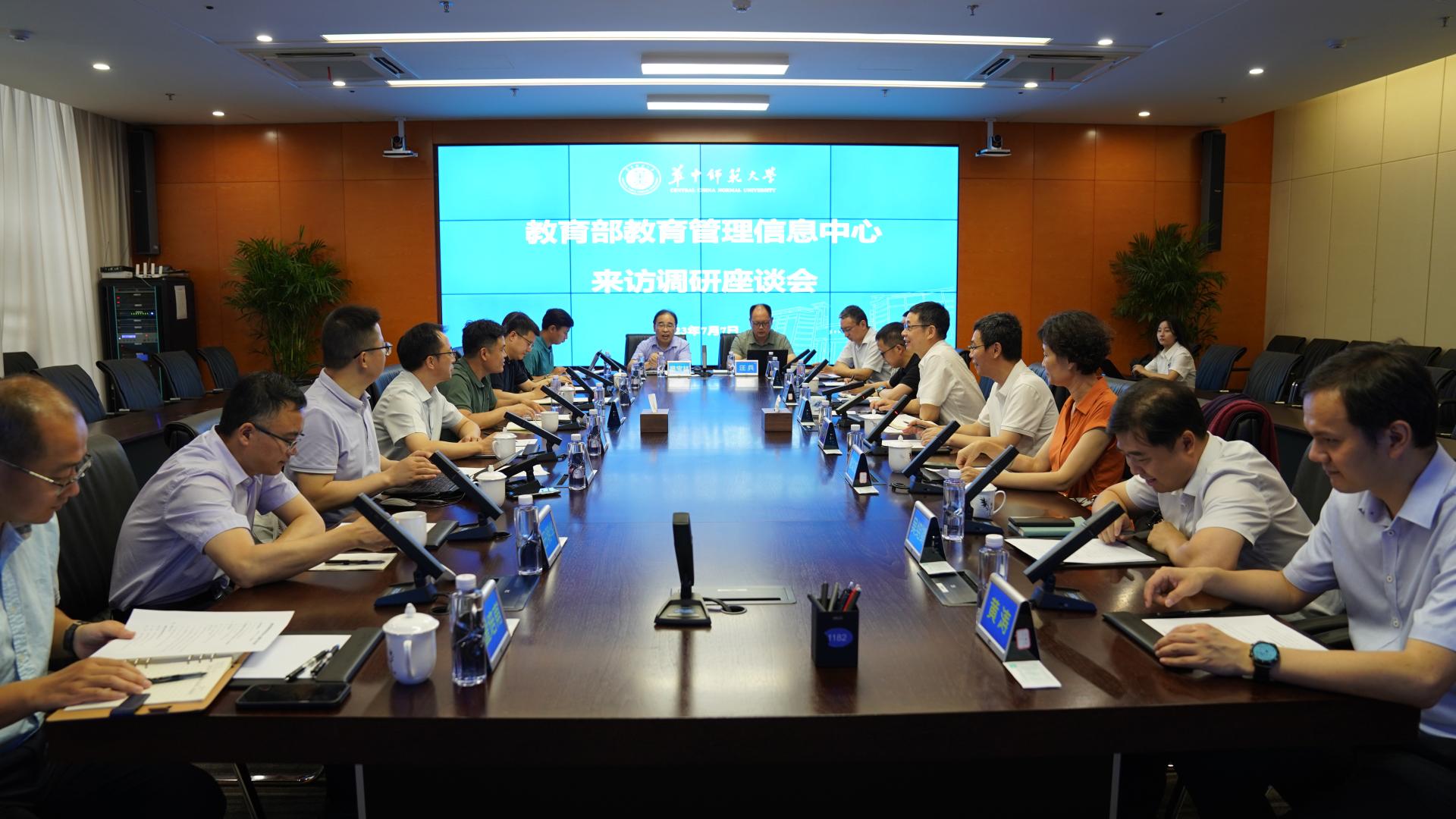 7月7日,教育部教育管理信息中心副主任杨志刚、副主任刘臻等到访华中师范大学教育大数据应用技术国家工程研究中心,对数据赋能教育管理决策开展专题调研,国家工程研究中心主任杨宗凯、华中师范大学副校长李鸿飞等会见调研团一行,信息化办、人工智能教育学部、湖北省教育信息化发展中心等单位负责人参加座谈会。