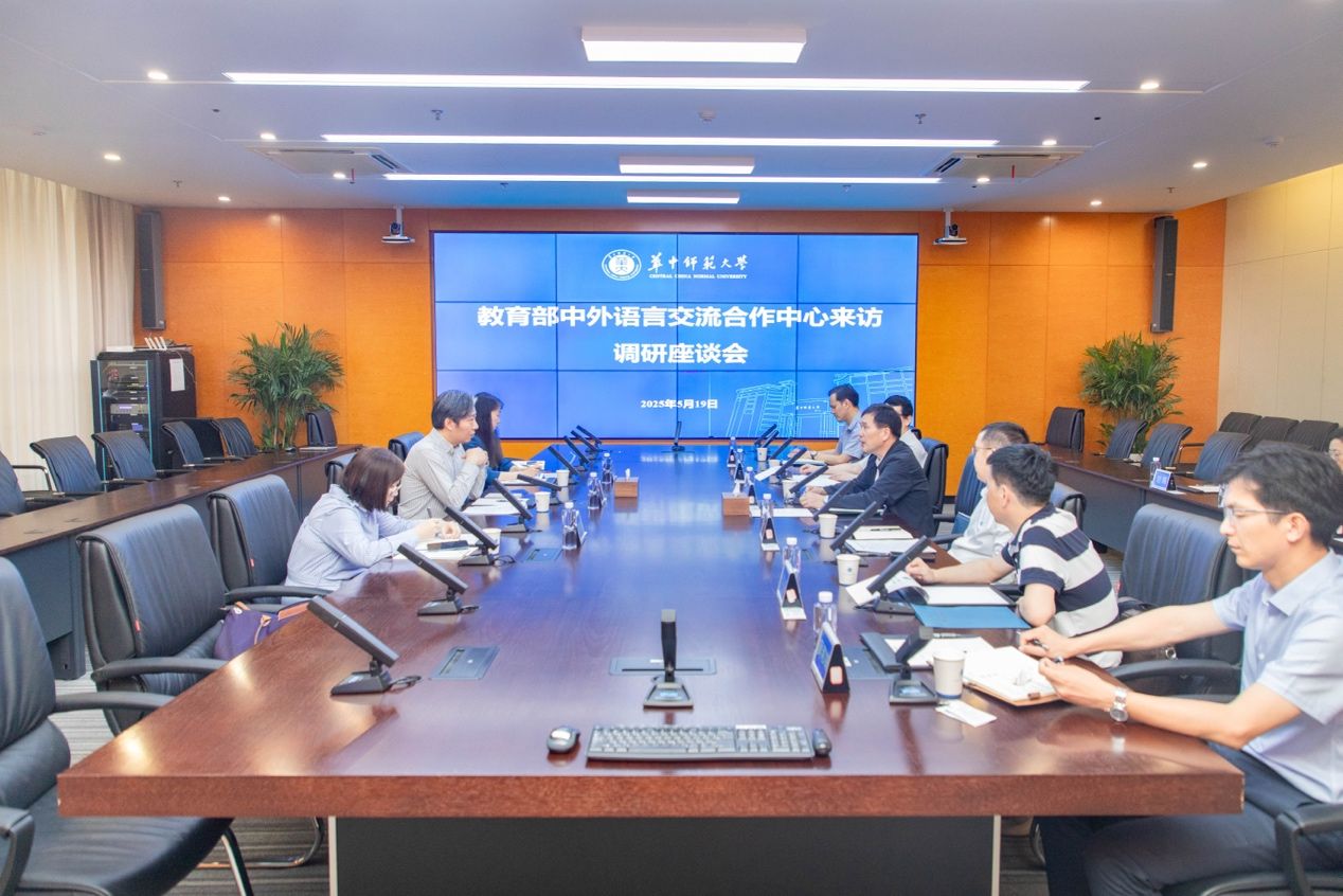 2025年5月19日下午,教育部中外语言交流合作中心党委书记、主任郁云峰率队来校开展调研,围绕国际中文教育、教育国际化、教育数字化建设等主题进行深入交流与探讨。校长彭双阶,副校长任友洲、刘三女牙与郁云峰主任举行会谈,并进行了深入交流。国际合作部、人工智能教育学部等相关单位负责人参加调研活动。