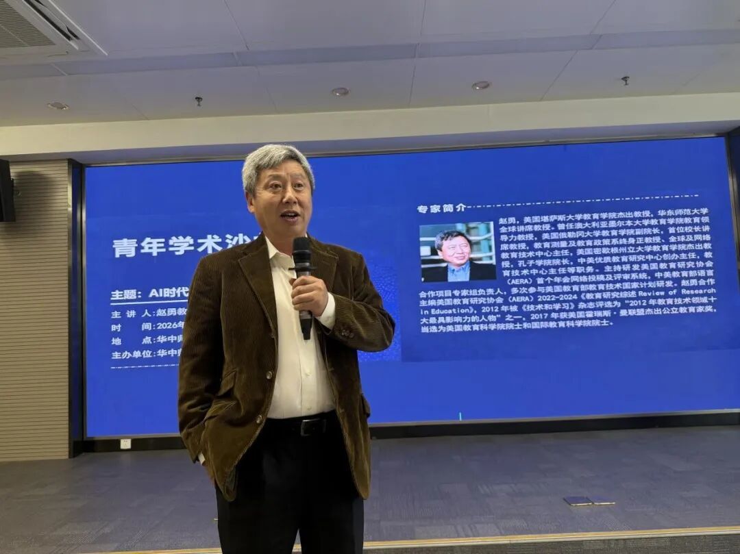 3月24日上午,美国教育科学院院士、堪萨斯大学教育学院杰出教授、赵勇教授在南湖综合楼7001室,与学部师生进行了题为“AI时代的教育问题与研究视角”的青年学术沙龙活动。活动由人工智能教育学部教育信息技术学院副院长罗恒主持。