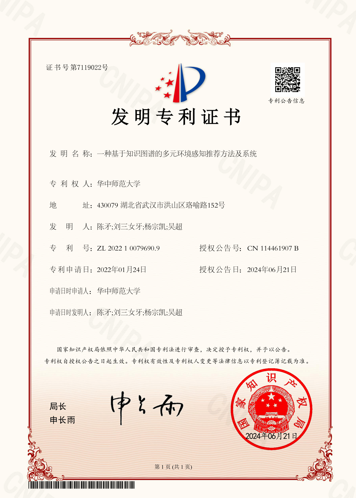 本发明提出了一种基于知识图谱的多元环境感知推荐方法及系统,首先设计了面向推荐场景的基于知识图谱的规则提取方法,其主要使用知识图谱中用户与项目之间的连接路径,来提取指定推荐场景中最能代表用户兴趣偏好及项目属性特征的规则。继而采用Bi‑LSTM模型来学习各规则生成的路径的语义特征,并采用注意力机制来区分用户对不同规则的偏好以及那些最能代表指定项目的规则。然后,设计了局部信息感知模块来学习用户与项目的近距离邻域特征;最后,通过聚合算法整合了全局信息感知模块和局部信息感知模块学习到的用户与项目表示,并实施预测。在三个真实数据集上的实验结果证明,所提方法相比于基准方法性能都有明显的提高。