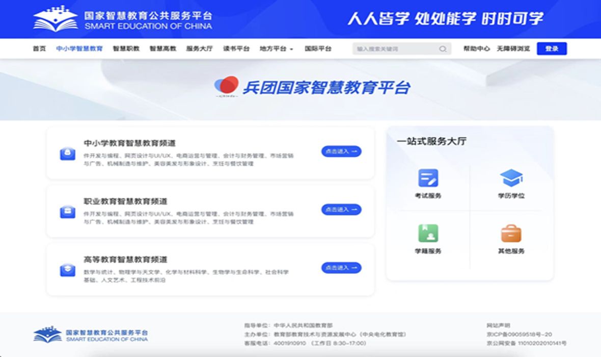通过顶层设计和统筹规划,着力发挥大数据、人工智能等新兴技术优势,构建集用户中心、资源中心、应用中心、能力中心、数据中心于一体的综合性服务平台,为兵团、师市、学校提供教育数字化服务;发挥教育数据要素潜在价值,打造数智驱动的智慧教育新生态,全面构建以数为擎、因数而智、用数说话的兵团教育治理新体系,全面实现兵团教育基础数据“一数一源”,教育数据“一屏可视”、教育应用“一键可达”,教育服务“一网通办”,提升民众对兵团教育的满意度。...